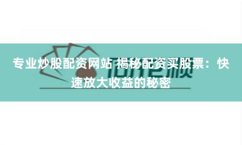 配资买股票是一种杠杆交易方式专业炒股配资网站,通过向券商借入资金放大投资本金,从而提高收益率。对于资金有限的投资者来说,配资可以快速放大收益,但同时也伴随着更高的风险。